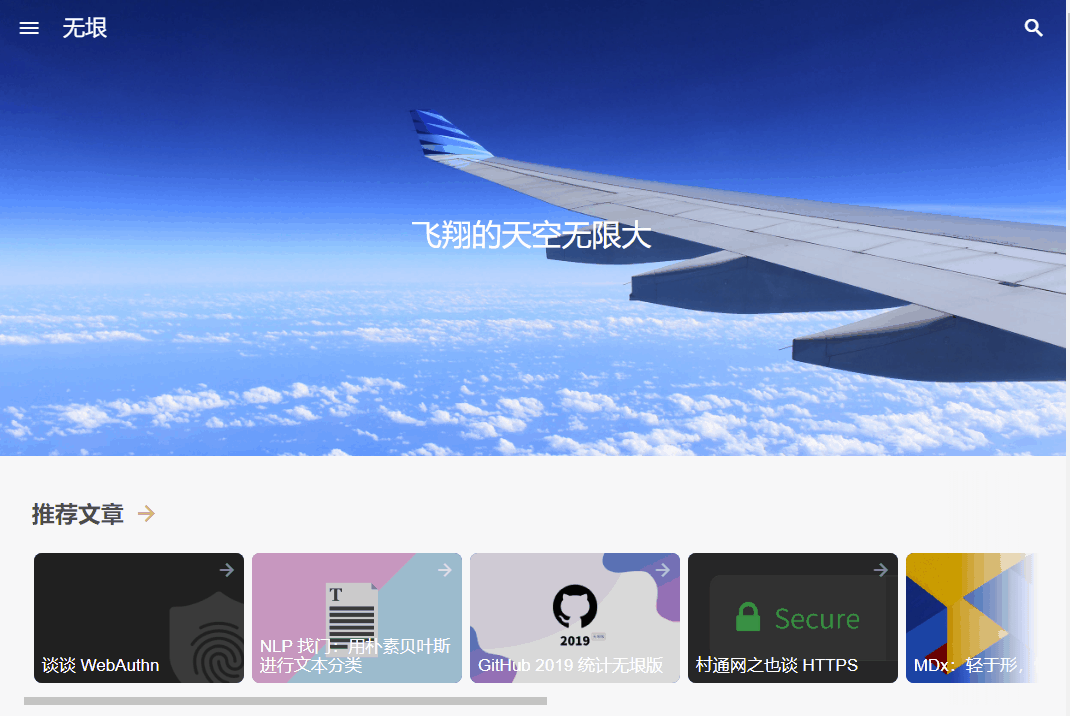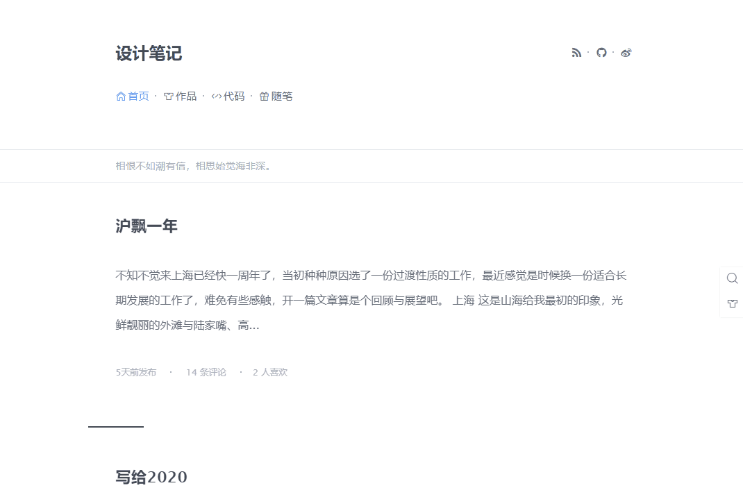 3、另外首页文章列表设计了一个向上浮现的效果,算我最满意的一个小 trick~ 文章封面视频 Demo 可将视频设为文章封面,支持 hls 流视频。使用说明见主题 wiki。