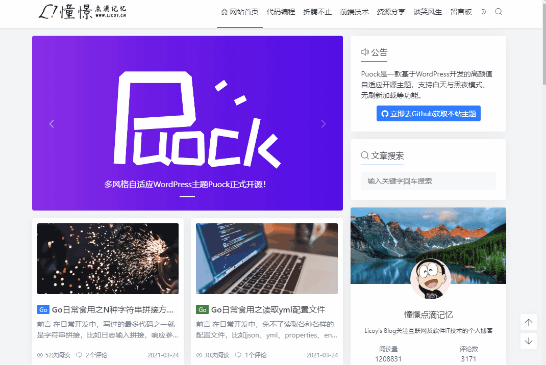 - 项目:https://github.com/Licoy/wordpress-theme-puock